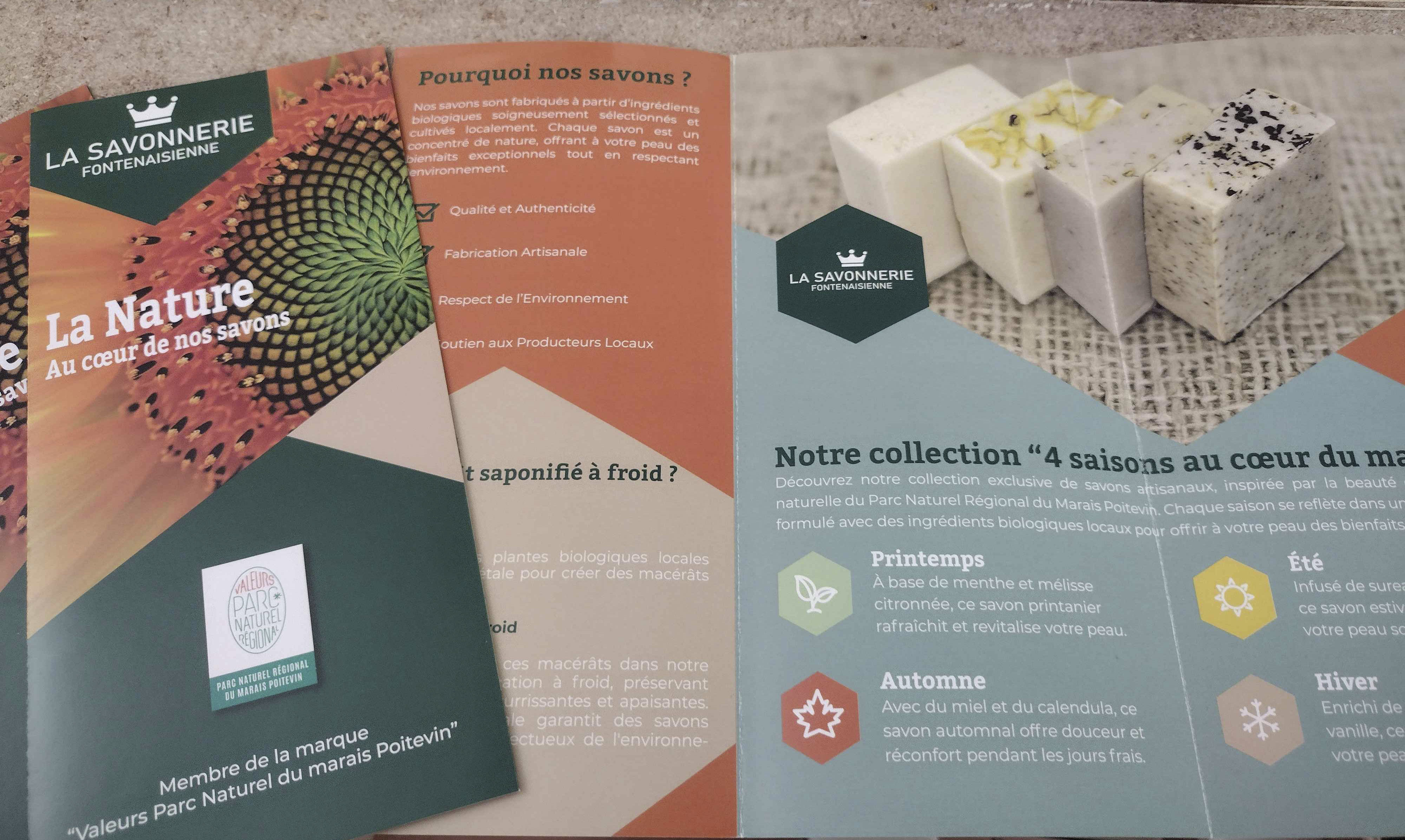 La Savonnerie Fontenaisienne est fière d'être labellisée "Valeurs Parc Naturel du Marais Poitevin". Ce label souligne notre engagement à valoriser et à préserver le patrimoine naturel et culturel de notre région. Nous collaborons étroitement avec des producteurs locaux qui partagent nos valeurs et s'engagent dans des pratiques durables.